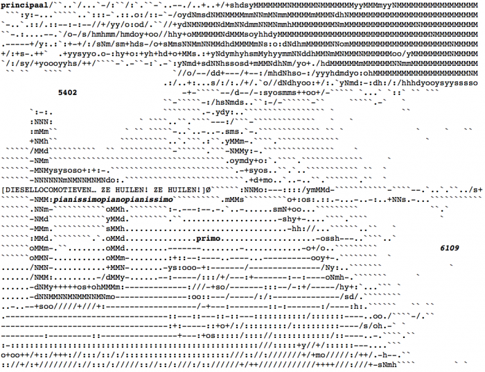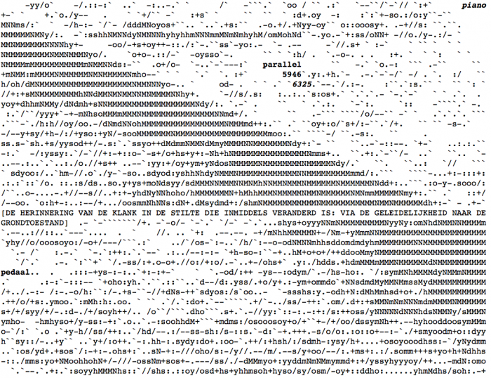 - computerstem leest de symbolen (monotoon, in een bepaald tempo); niet-verstaanbare tekst, ritmisch.