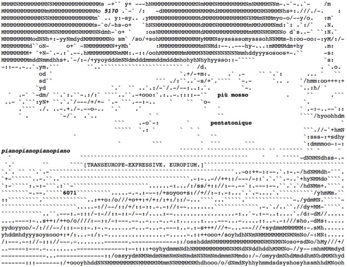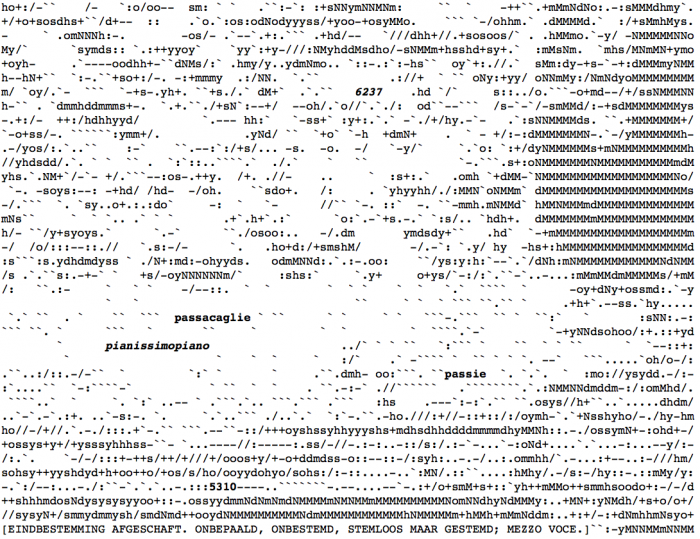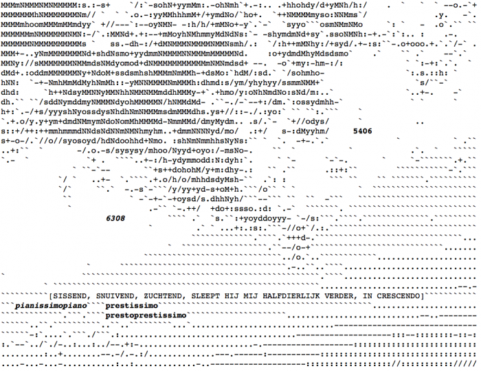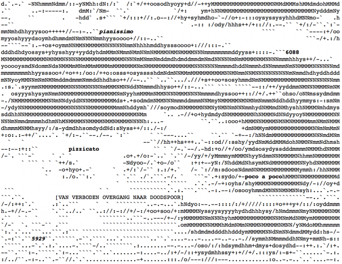 NTV13-NTV1-NTV59-NTV57-NTV36-NTV27-NTV74-NTV66-NTV63-NTV90-NTV85-NTV92-NTV109-NTV103-NTV116-NTV113-NTV131-NTV140-NTV143-160 (aanduidingen) + afbeelding, ASCII-partituur, cijfers.