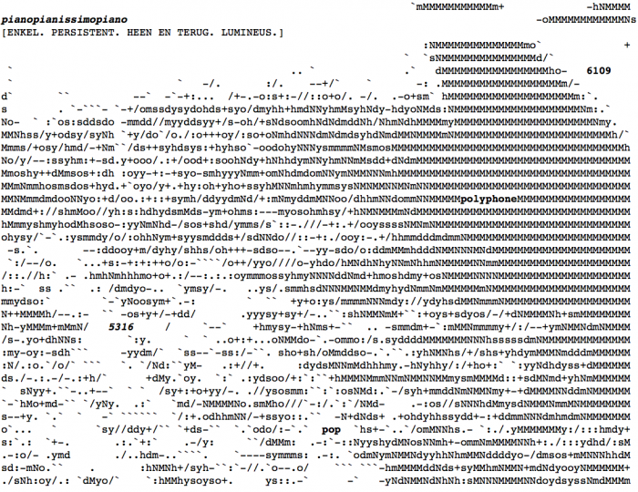 [ENKEL. PERSISTENT. HEEN EN TERUG. LUMINEUS.]