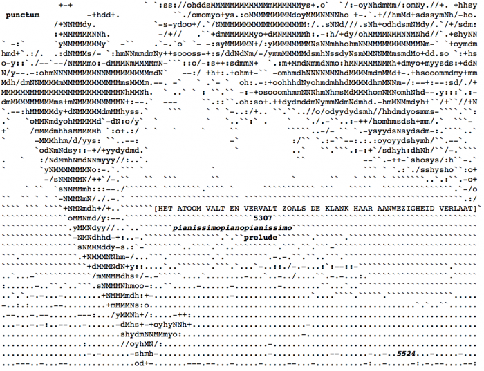 [HET ATOOM VALT EN VERVALT ZOALS DE KLANK HAAR AANWEZIGHEID VERLAAT]