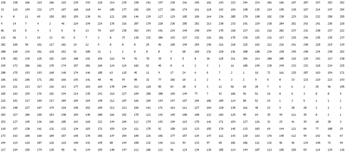 160 afbeeldingen werden gemaakt van onderstaande afbeelding (die werd vergroot op A1-schaal). Piksels, noise en details worden zichtbaar. Hieruit werden 20 afbeeldingen geselecteerd, die via een ASCII-converter werden omgezet naar ASCII en die via het programma Matlab werden omgezet naar cijfers (met dank aan Jan Eysermans).